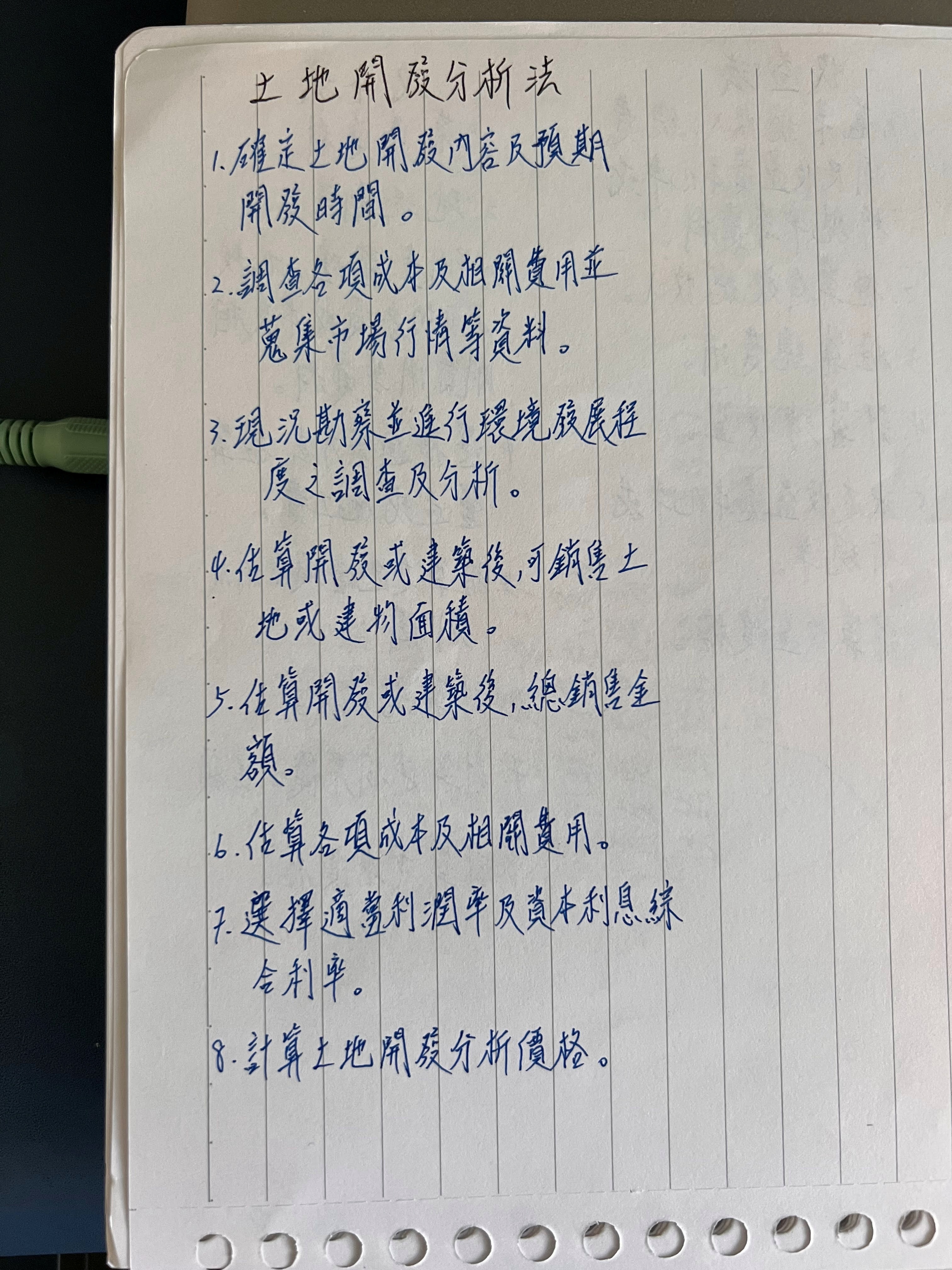 教材方面,我只有使用三民輔考的教材,民法課本我是讀戴久喨老師在地政士班使用的課本及架構圖;而土地法的教材,戴老師的課本絕對夠用,非常完整; 估價概要基本上內容不深,而且考試重點也很好抓,除了聽朱智豪老師講解外,重點部分認真讀,一定至少會寫一半以上的申論題; 經濟法規的話,林強老師的課本很好用,架構很清楚,基本上讀個兩遍以上就可以抓到感覺了。如前述所言,申論題在準備上就是按著戴老師的標準下去寫就對了, 至於選擇題就是練越多越好,選擇題除了範圍廣外,更是要選出相對正確∕錯誤的選項。因此,不光要大量練習,還要知道錯誤在哪裡,不能一知半解。