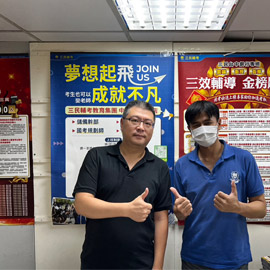 也特別感謝三民補習班提供專業的教師、仔細貼心且具備專業輔導技術的班主任……