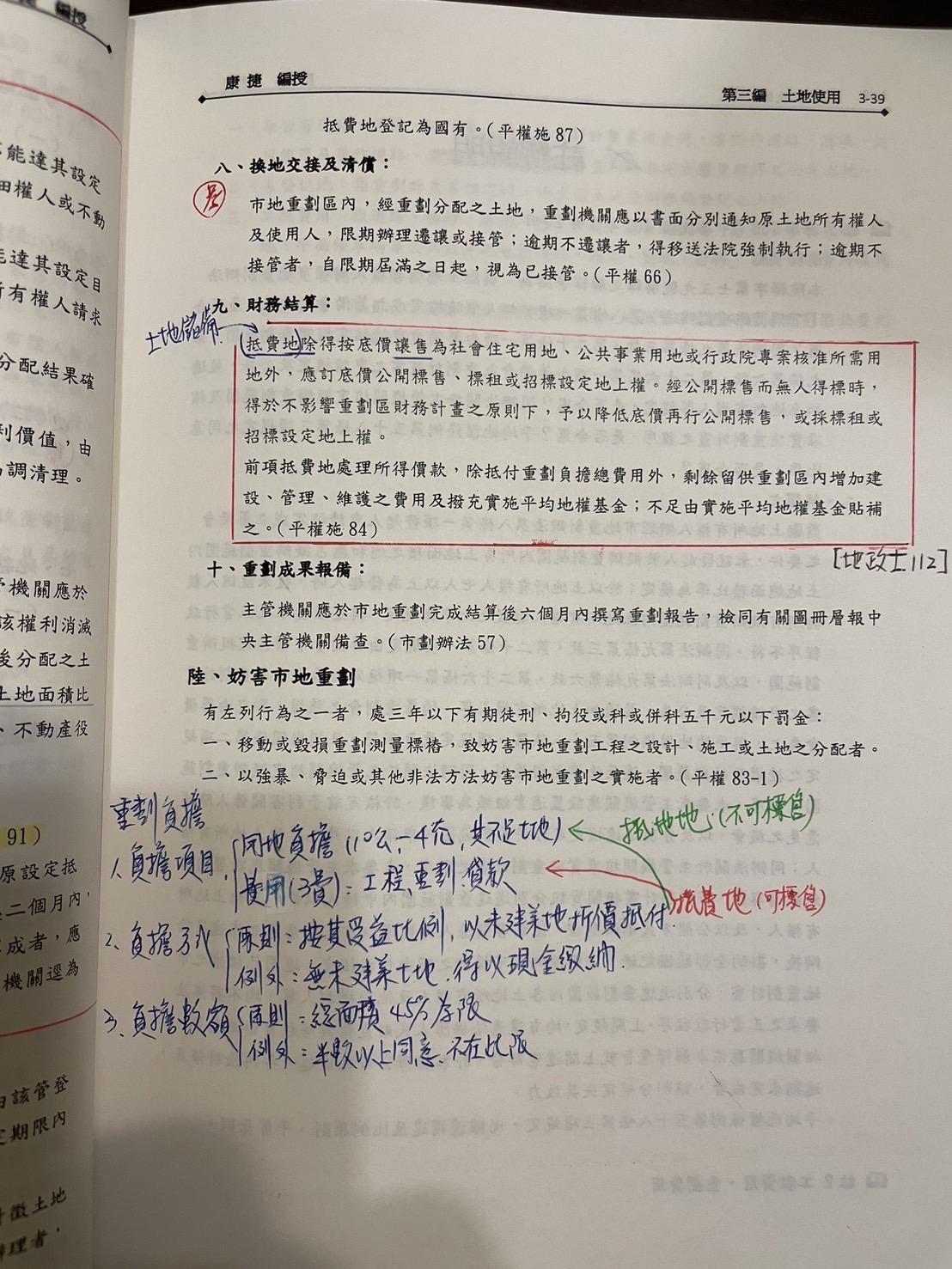 【土地登記實務】 康捷老師給的講義其實已經相當完整,也都把重點節錄出來,基本上熟讀三至五遍,做題目不成問題,另外我會把曾經考過的條文,在講義上用紅筆框起來加深印象,畢竟這科也是屬於「背多分」。