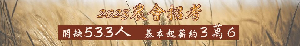 中華民國農會公告《全國各級農會第9次聘任職員統一考試報考簡章》, 總計招考800人,含八職等33人,九至十一職等767人。此次農會招考共分七大類,包含企劃管理類、農業推廣類、經濟事業類、金融業務類、財務管理類、保險業務類及資訊管理類。 農會以薪點方式計算薪資,根據各地農會的經營狀況不同,起薪約為3.6萬元,且年薪資平均16個月。農會招考維持往年不考英文、分區報名分發的特色,歡迎想穩定就業、離家近工作的考生報名。